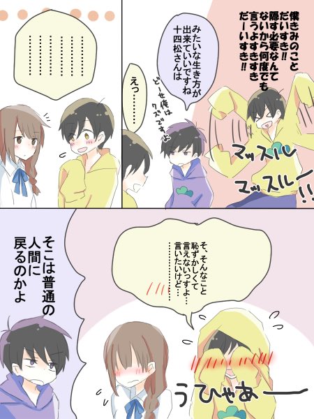 @ma_zzh まりもさん!!遅くなってすみません、以前いただいた一にゃーのお礼描かせていただきました!!カラおそっぽいものを目指したつもりだったのですがこれただの長兄になりましたすいません!!!お納め下さい!!!