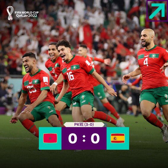@Watari_bird1121 一回戦通過組の殆どをヨーロッパ勢と南米勢が占める中、ただ一つアフリカ勢のモロッコ🇲🇦