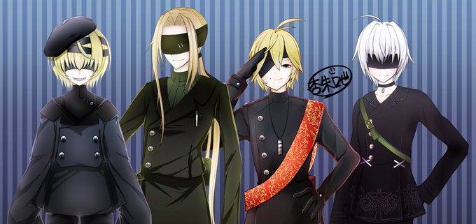 うちのメカクレ達。 1枚目はかくしめあかしの天狗、金鹿さん。 2枚目の絵は宵闇のトゥルビヨンのオートマタ達(一人コスプレ)。 #世界メカクレの日