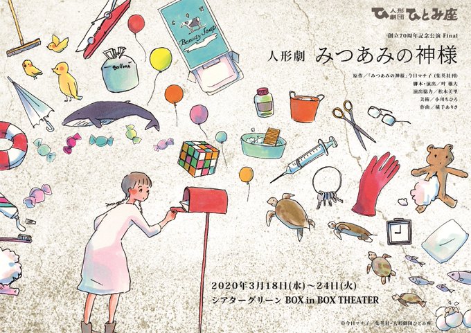 ひとみ座70周年記念公演Finalとして、漫画家今日マチ子作品「みつあみの神様」を人形劇化。こちらに出演致します。