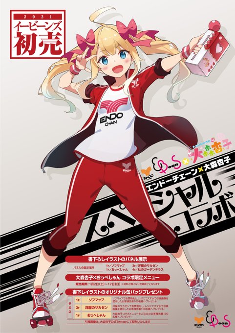 仙台駅前EBeanSコラボの詳細発表✨2021年の1月2日からコラボスタート🎍まずは施設内3つのお店とコラボ🎉そして施設内5カ所に等身大パネルを設置!全て絵柄が微妙に違うよ😘更にコラボ店でお買い上げの方にコラボ缶バッジを各店舗先着100名様プレゼントします🎁店舗コラボ詳細は後ほどツイートするね💕