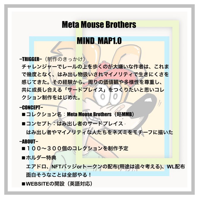 WEB3に生息するマウスの兄弟。彼らは常にチャレンジ精神と好奇心、そして諦めない心を持っています。