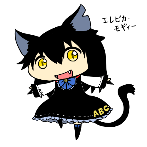 UMA擬人化シリーズ。エイリアンビッグキャット(ABC)のエレビカちゃん。身長が176cmあるメス猫です。自身を宇宙から来た猫だとか地球征服者だとか称していますが、それを聞いた人達はそれを自然と信じてしまうらしい。本当かどうかはさておき。