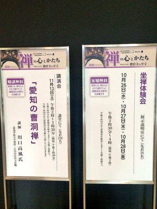 「禅の心とかたち 總持寺の至宝」展へ🐈(先日ゲットした素敵なopを着て行きました♪🐶)図録も買ってしまいましたが、やっぱり作品の細かい部分は生で観るに限りますな。とても良かった…◎11/27までですので、ぜひ✨🚋体験会とは別に、ミニ坐禅体験コーナーも会場内にありました🌚
