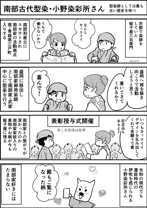 南部利直公より招かれ京都から南部家御用染師に。