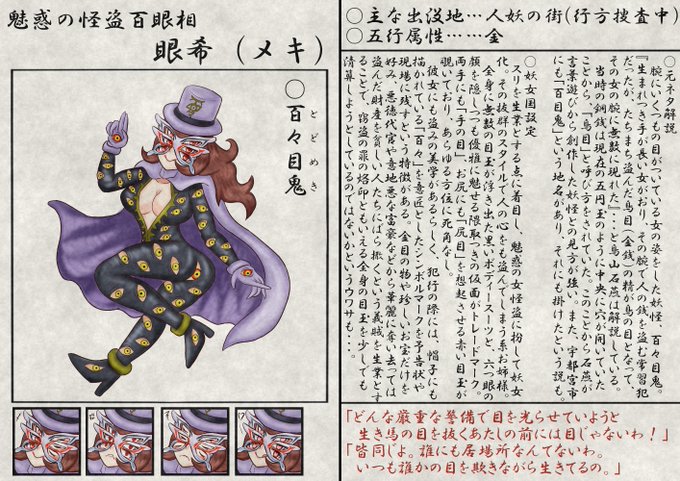 仮面やボディースーツを用いて全身で多眼を表現しつつ、セクシーな女怪盗として妖女化。