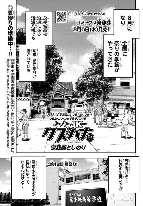 【#ヤンキーJKクズハナちゃん】マジ人気爆発!359人の女子高生にいじられまくりなつらたんハーレム学園ラブコメ!明日(7/9)発売「#週チャン」32号に第16話「夏祭り!」掲載です!胸キュン納涼夏祭り編突入!新キャラも登場!単行本第1巻▶︎8/6発売! https://t.co/ZkusJ75lTL【#宗我部としのり】
