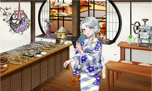 瑞穂、明石と並びそうな限定グラフィックの多い艦娘さん狭霧に満を持して浴衣登場。