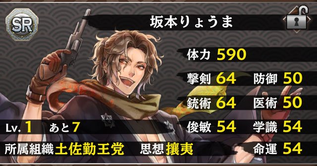 天狐さんに「幕末維新のモノノフ大会」の総合順位上位報酬を聞いてきました。今回は「坂本龍馬」様だそうです!少ないタマフリポイントで、巻物に特殊効果を付加できるタマフリがとても魅力的です。 #クイズバトル討鬼伝