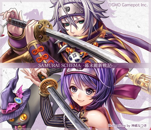 先月リリースされましたGMOゲームポット様のアプリ「SAMURAI SCHEMA -幕末維新戦記-」にてキャラクターイラスト数点を描かせていただいております。宜しくお願いします! https://t.co/Z6TweTGmzL