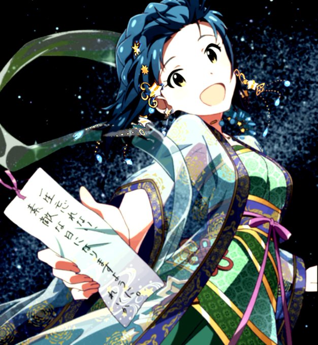 #7月は七尾百合子強化月間 #月刊七尾百合子 #ミリコラ #七尾百合子 リテイク 最初のコラより血色が良くなりました(笑) 短冊が白紙なのは、Pさんに願いを書いてもらおうとしてる、ということにして下さい