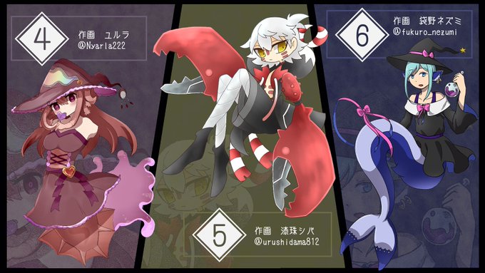ナナジさん主催のハロウィン+水生生物の誰デザ参加しています!(1番は私が作画担当です)