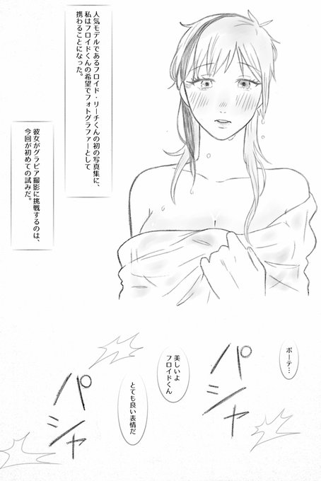 ずっと描く描く言ってたのに時間が取れずうだうだしてきたのでいい加減切り替えようと結局ボツにしちゃいました…すみません…もったいないので供養します……!本当は4ページの漫画になる予定だったルクフロ♀のカメラマン🏹×モデル🦈♀パロ(?)です!