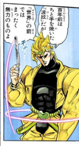 第1部でジョナサンの爆発力を忘れて死にかけて、さらに波紋でクビだけになったのを「ちょいと手を焼いた」とか捏造に近い舐め腐ったセリフを吐くものの、