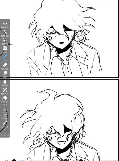 ◀︎去年6月に描いた狛枝 ▶︎今描いた狛枝