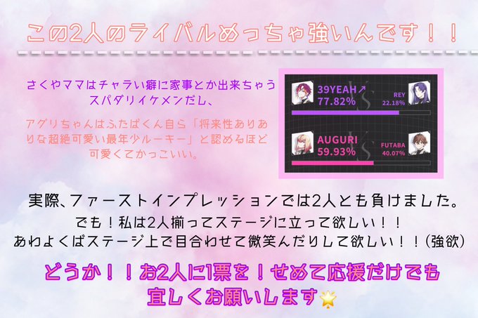 私は2人に、勝って欲しい。皆さんの力を貸してください…💫