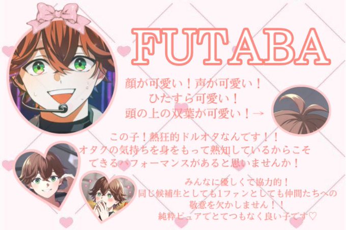 みんなそれぞれ推しがいることは分かってる。だからせめて、ピンクはふたばくんを、紫はレイ様を、応援して貰えるように作りました.ᐟ.ᐟ