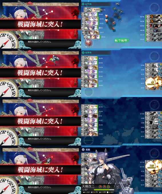 かもちゃんこと秋津洲ちゃんは、ちょっと思い出深い子。いつかの夏イベで急遽二式大艇が必要!ってなった時に初ドロップしたのかな。イベ中なのに必死こいて育てたなぁ…w