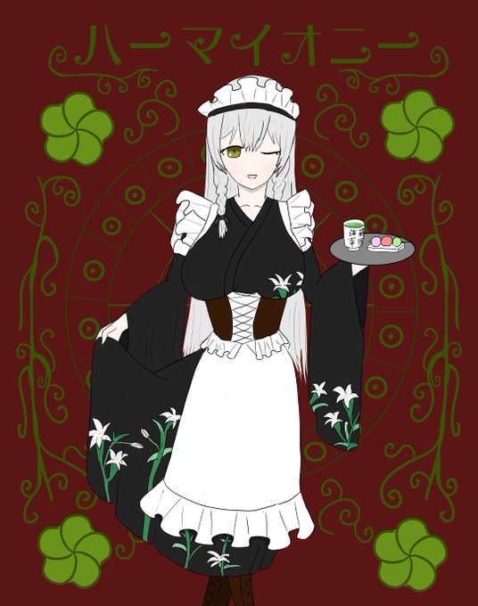 おまけで背景(?)無し版です。絵では隠れてしまいましたが、衣紋はたっぷり抜きましたのできっとうなじが美しく見えることでしょう。