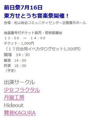 松山で告知したコミケ前日ライブの情報だょ✨