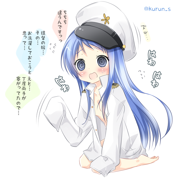 提督の服をこっそり着てみようとしていた所、見つかってしまった五月雨ちゃん