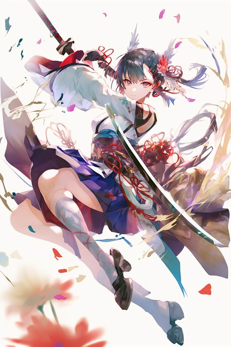 花と女の子、侍ガール #nijijourney #flower #ornaments #美少女 #花飾り #刀 https://t.co/pNrtJQIdL0
