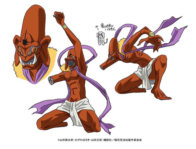 毎週金曜日に制作現場の裏側や未公開素材をお届けする「制作現場で候」。今週は操られた七弦、限界まで涅哩底王のダメージを代わりに受けた魔神の設定画です!七弦は目が虚ろでクマが印象的ですね。魔神は象の絵も可愛いですが、あらゆる箇所のダメージをみるとなんだか切ない気持ちに。#桜花忍法帖