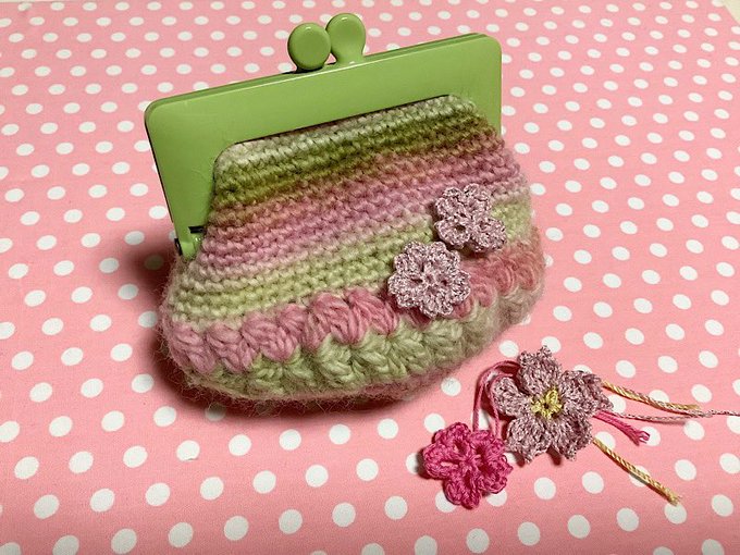 桜モチーフのがま口できました。
