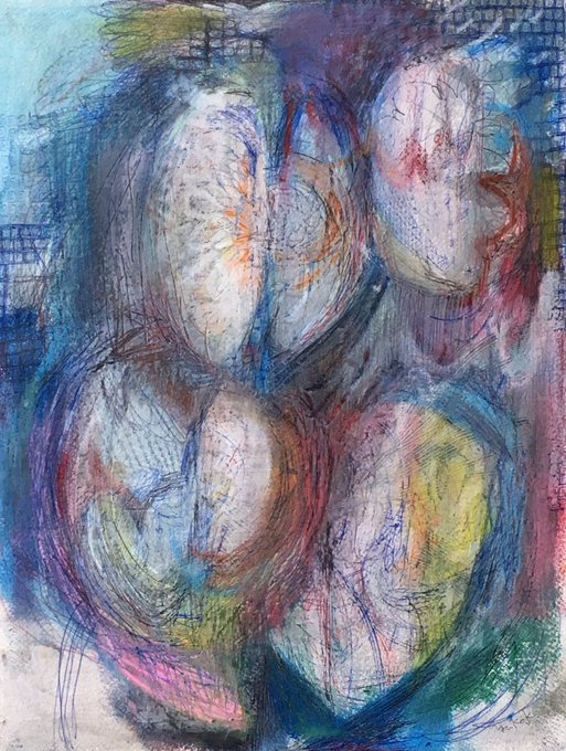 時間薬 ボールペン、透明水彩、オイルパステル、透明くれよん、ポーリングメディウム、水彩紙 41×31cm