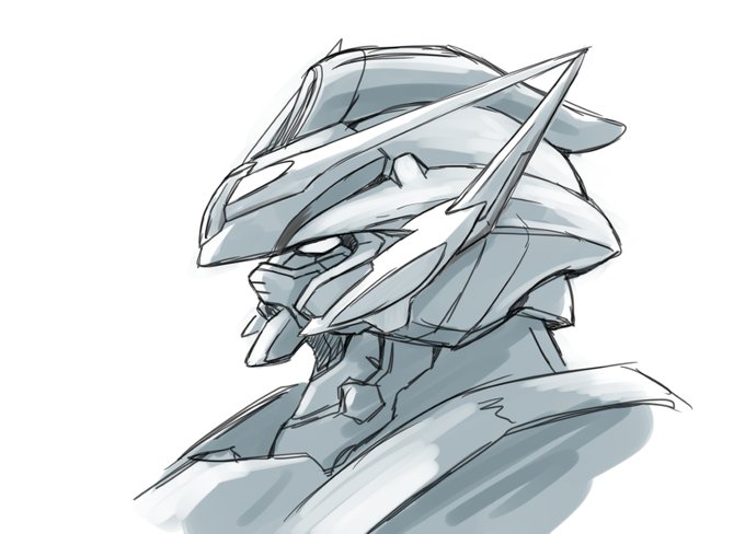 見た目のデザインが出来たら中身をもう一度考える って別にこれ使う事無いから描く必要無いんですけどイメージ膨らます為に…ね 顔初期案から途中の絵 サブアンテナの可動は考えていなかったけど別モード発生時に保護カバー欲しいなと思って可動するように変更