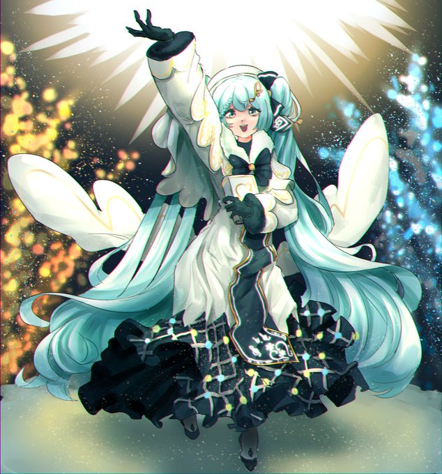 유키미쿠 2021 새 공식일러 너무 예쁘다😭💕 뒤에 반짝반짝거리는 나무들도 너무 잘 어울리고 미쿠 머리에 장식들도 겨울 느낌 물씬...빵모자 벗은 모습도 정말 귀여워!! 이번 크리스마스는 유키미쿠랑 함께 보내면 참 알찰거야...