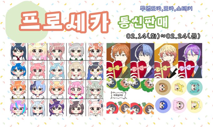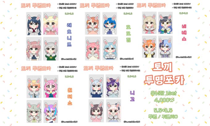 토끼 투명포카, 발렌타인 포카, 야채싫어 투명포카, 버싱 원형스티커