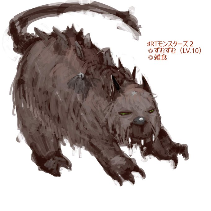 いいね&RT、ありがとうございました!早速進化しました…!額になにか浮かびあがってきた…?二足歩行の"DARK CHOCOLATE WOLF"です!次は60RTで進化します〜!要素募集中です…!#RTモンスターズ2