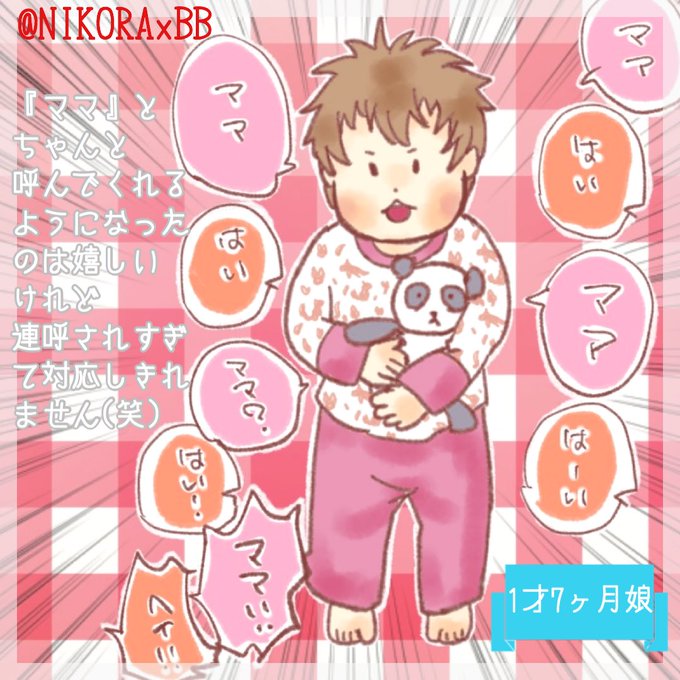 ここみそ1歳7ヶ月~!ようやく復唱を気分がのった時に微妙~にし始めた、はーいはようやく素直にするようになった!!半年かかったね!!!体重何ヶ月も停滞してるけど、最近やたらと月齢より大きく見られるから身長は伸びてるのかな?明日ようやく測れるよ~ #育児イラスト #育児絵日記