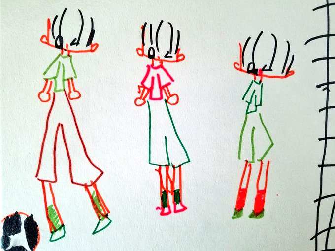 #画力ビフォーアフター 小1(再掲)←→無職 子供の頃には腕と頭部を描き忘れて、大人になったら職に就く事を忘れました( ◜ᴗ◝)テヘ
