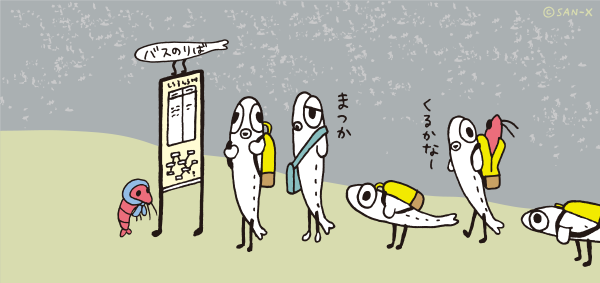 【しらす逃走記111】バスのチケットを手にいれたので、のりばを探してみたら、大きな石のかげに、発見したです!バス停です。時刻表をみると〈新月のよる26じ〉にバスがくるみたいです。しばらくこないけど、のんびり待つです。 #しらす逃走記
