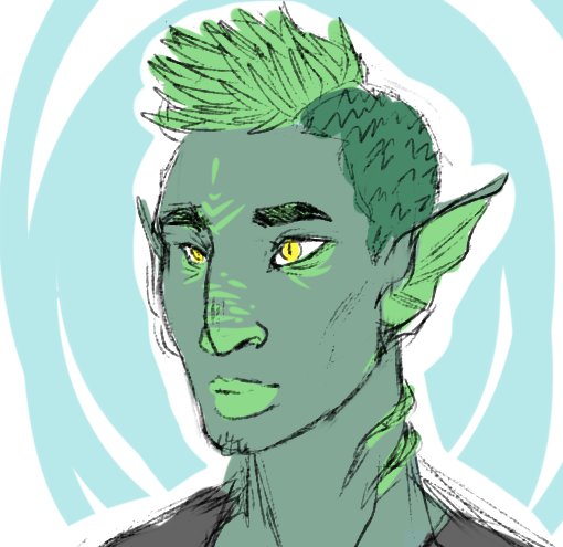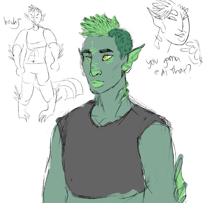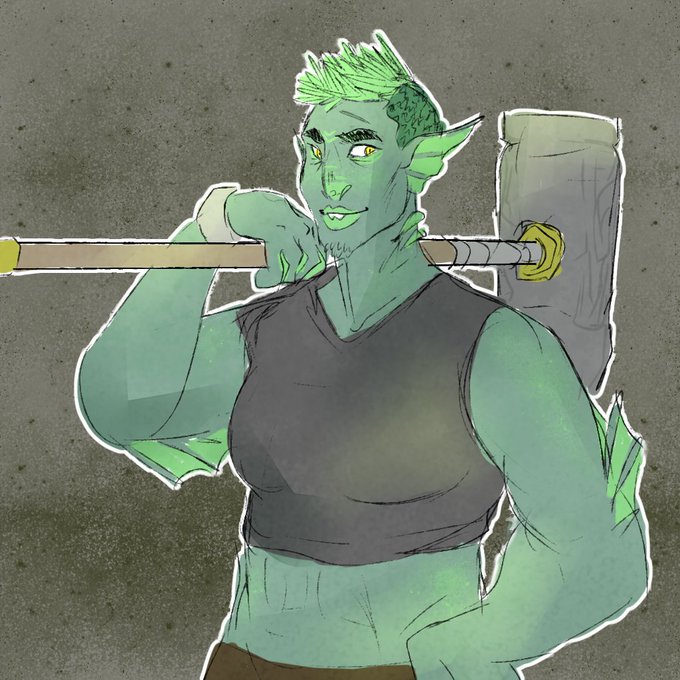 my first proper dnd character (at least, one i actually play!) a barbarian sea storm path triton! they have no gender and have always wanted to be a bard...