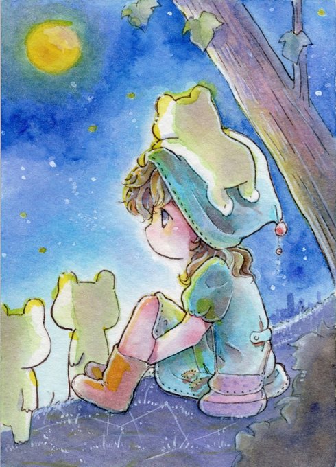 いろんな色の表現が好きですが星空が大好きで青が1番心に落ち着くのか青い作品が多いです。