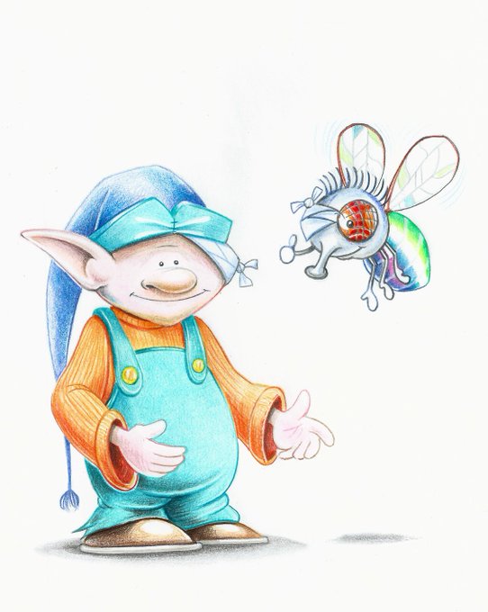 Fly has only one eye and is sad and lonely. Elf has only one ear.