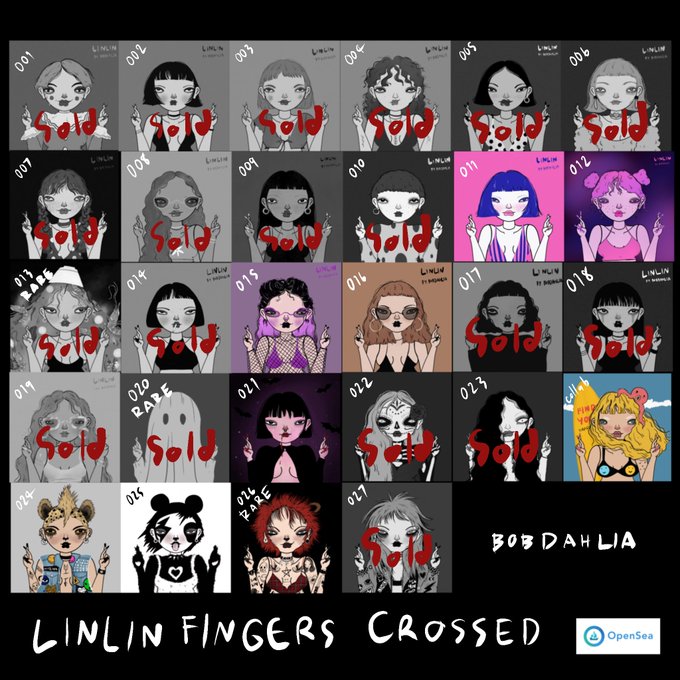 I'm in love with @Bobdahlia_NFTs LINLIN Fingers Crossed project ✨ Art is so distinct and the attitude and energy in these gals is just so perfect 🖤 They also brought be some good luck 🤞