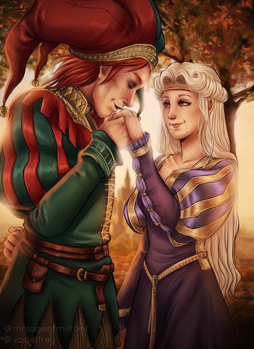 Do you know? 💕 (Arro & Yonvi by me) #jester #medieval #princess #fantasyart #originalcharacter #originalart #digitalart #couple #love #lovers #middleages #clown #ArtistOnTwitter