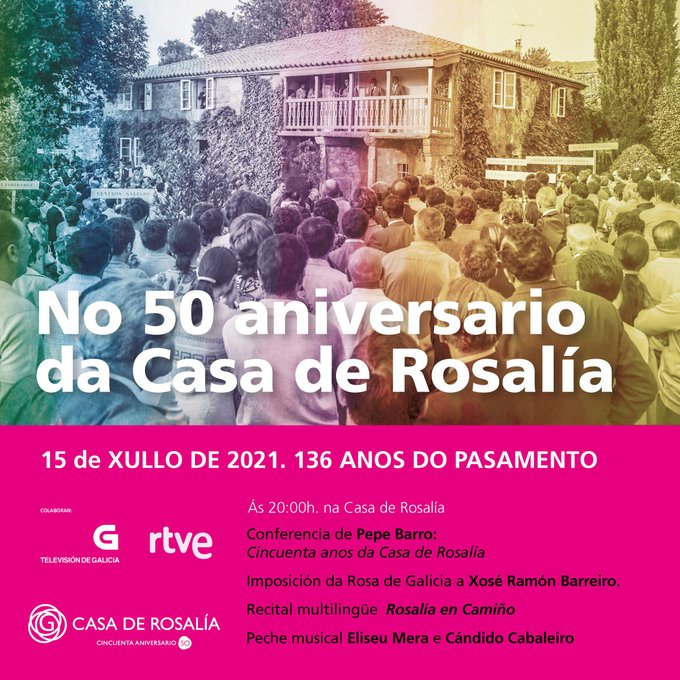 🚀 Mañá é o día! Cúmprense #50anosdaCasadeRosalía e imos celebralo por todo o alto: pola mañá un encontro con poetas locais e Secho en Iria no #RosalíaenCamiño; e pola tarde nun acto institucional na Horta da Matanza.