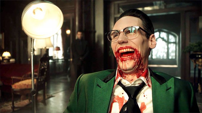 Ed went through a lot on his journey to becoming the Riddler. He got frozen in a block of ice, tortured, kidnapped, stabbed, died & came back to life, had a chip put in his brain, & suffered through some truly bad hairstyles. #Gotham #SaveGotham