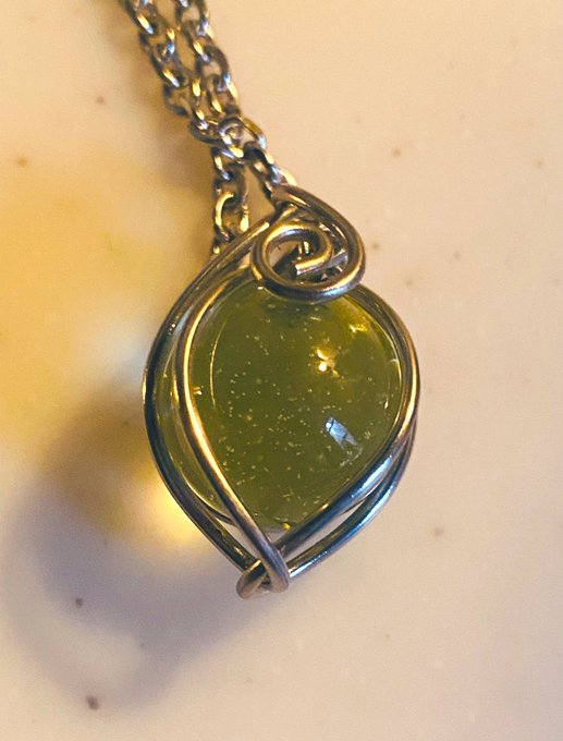 朝起きたら新しいウランガラスのネックレス届いてた😆!