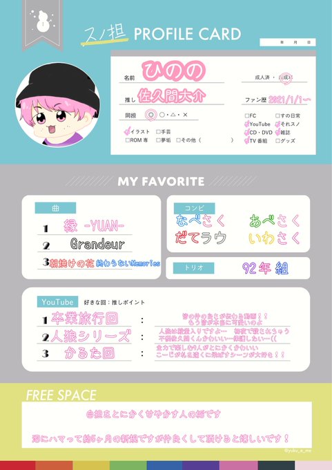 #スノ担プロフカード(テンプレお借りしました)