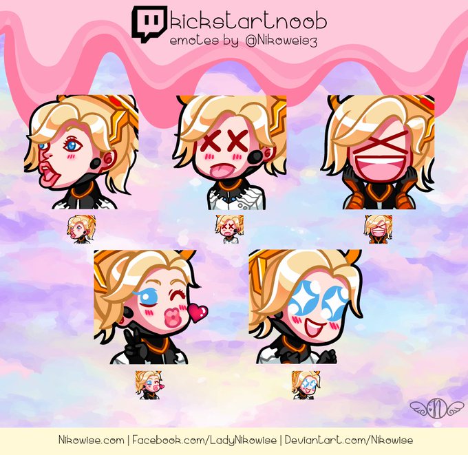 I am SO EXCITED for these #Mercy themed emotes for @kickstart_OW 🤩 Thank you for commissioning me to make them 💝 #twitchstreamer #twitchaffiliate #supportsmallstreamers #supportallstreamers #twitchemoteartist #twitch #emotes #Overwatch #Overwatchleague #artistsontwitter