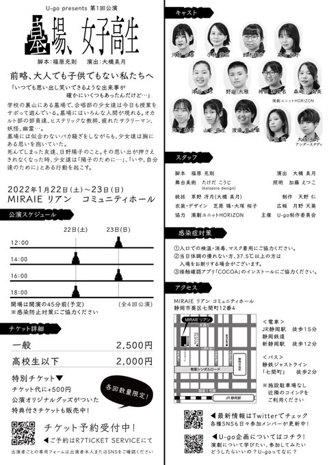 学生のみなさんに混じってU-go 2021「墓場、女子高生」に出演します🥳