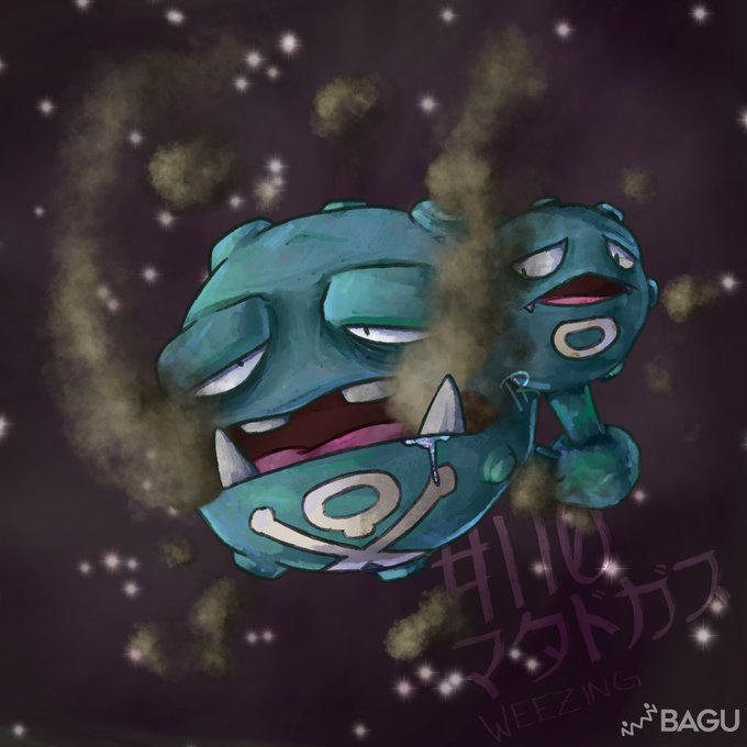 ...his use of really chunky texture so weezing looks super gross and deformed and not just like a purple balloon. That texture was the inspiration for this koffing I did a few weeks ago. Hajime Kusajima is a great artist and I plan to do a video on his art sometime.