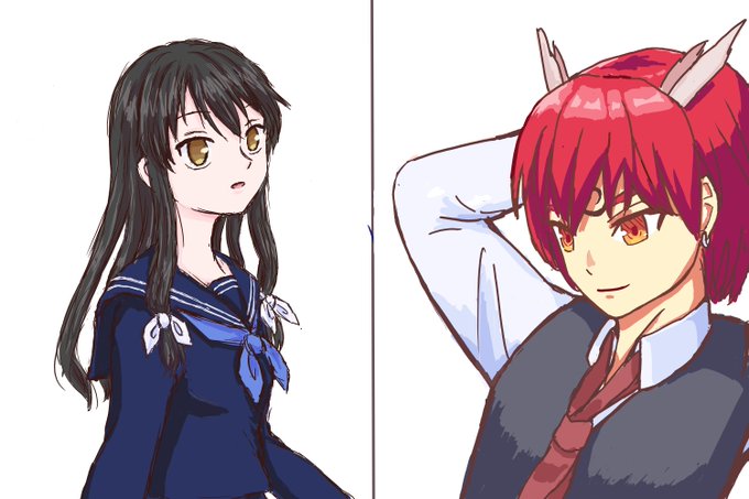 Robさんは中の人を描いたけど、こちらはイカちゃんを擬人化して描きました!(後ろの二人はおまけ。)