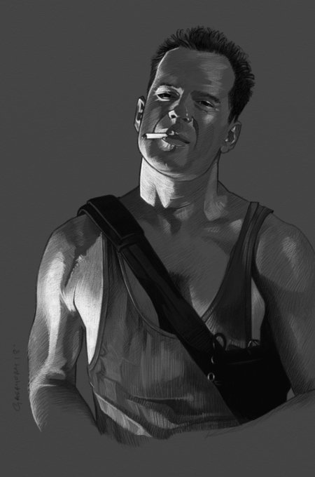 John McClane painting done on stream this week. Not sure how i feel about this digital 'painting' 🤔🤔🤔 #twitchcreative #twitch #twitchart #diehard #brucewillis @clipstudiopaint